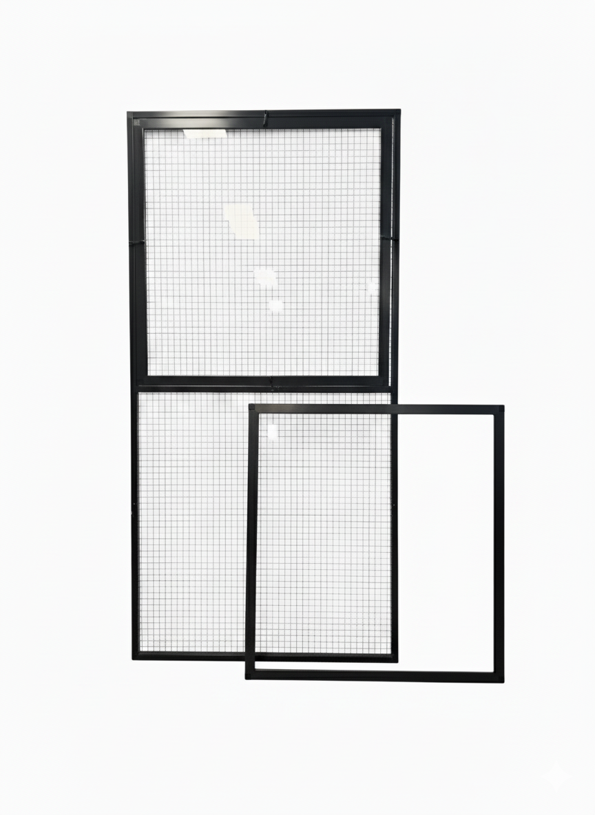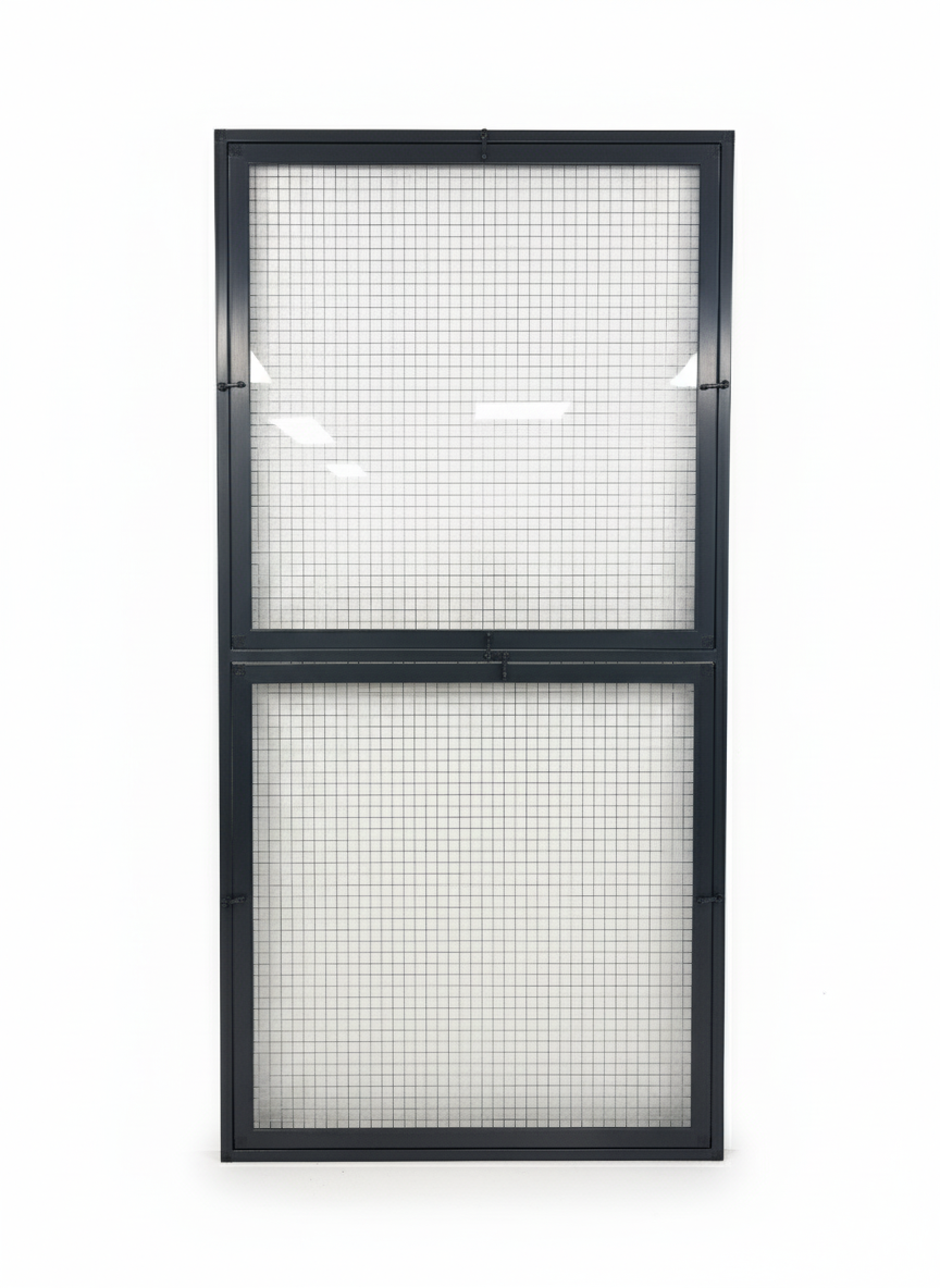 - Set van 2 voorzetramen - Deze set bestaat uit 2 voorzetramen, geschikt om een gaaspaneel van 85,6x176 cm volledig af te sluiten. De voorzetramen kunnen individueel geplaatst worden en worden weggenomen. Let op; deze voorzetruiten passen niet op een deurpaneel van deze afmeting, enkel op gaaswanden.